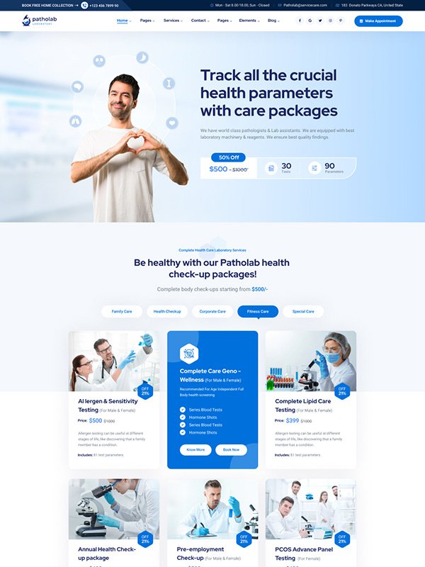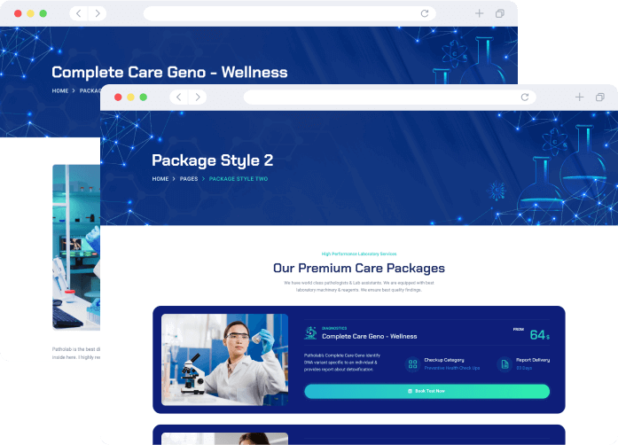 As packages ar are the most important features in a laboratory website, we have presented them in a versatile manner. As client you will get agreat exposure in the details page also.