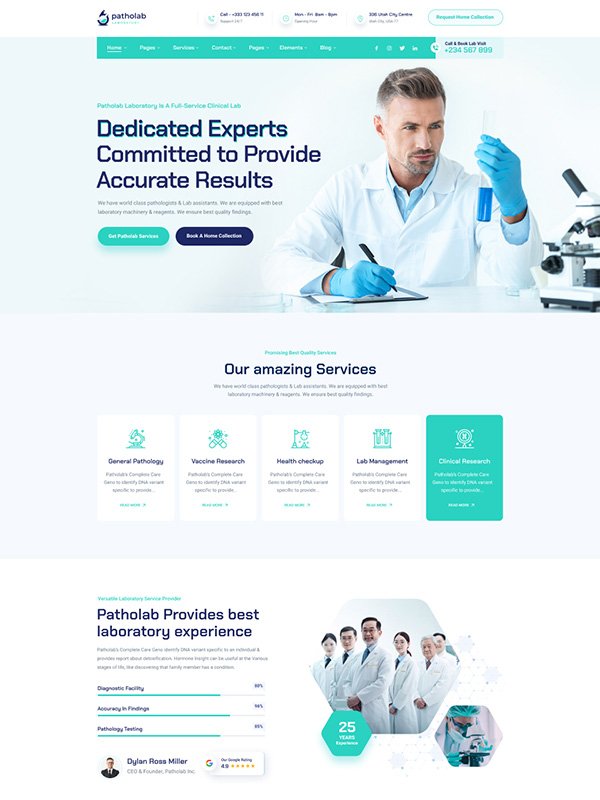 With Patholab you can easily create your own complete website. The inner pages have been optimally designed and arranged to serve your needs.